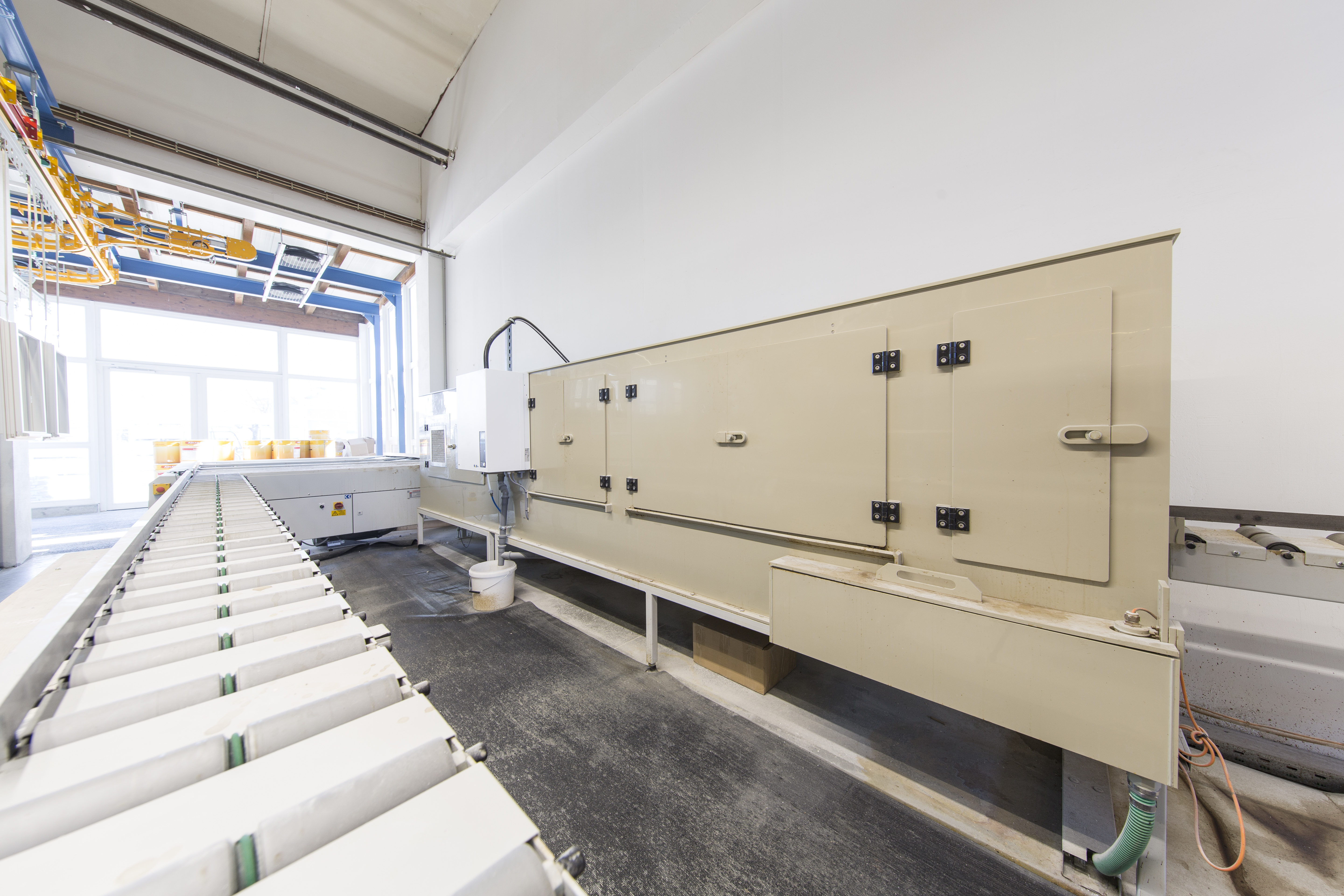 The flowcoroll system is designed for impregnating wooden window parts or mouldings in horizontal position using non-pigmenting, aqueous substances.